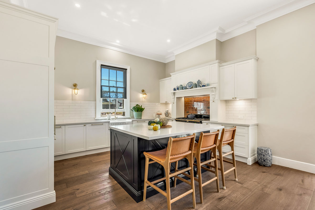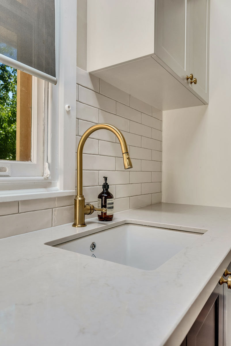 In keeping with the traditional style, handmade subway tiles and brass accents were selected, seamlessly integrating with the home’s heritage. Thoughtful design and planning minimised challenges during the renovation process, resulting in more efficient and enjoyable daily tasks for the family.